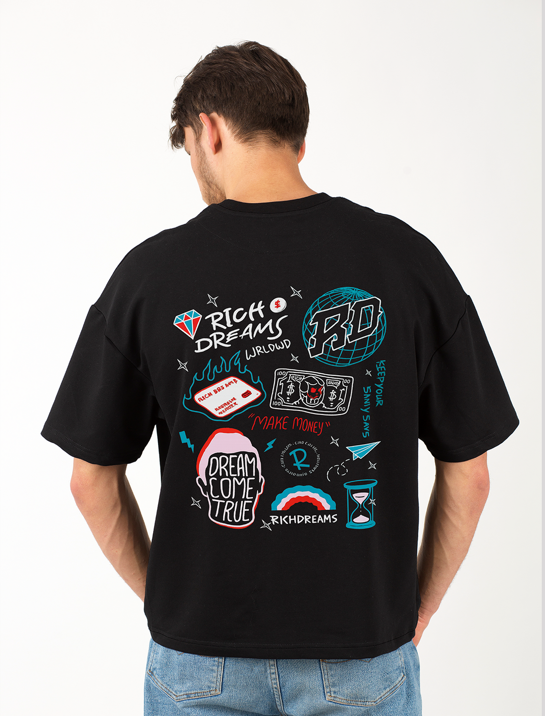Dream loud, live bold 💎🔥The Oversized “Rich Dreams” Street Doodle Tee is packed with graffiti-inspired...